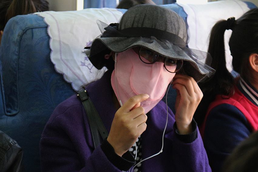 - Mulher se protege de poluição na China. Governo tem adotado medida de redução de emissões por políticas de clima mas também por questões de saúde pública. Foto: Nana Queiroz – Pequim, 2015