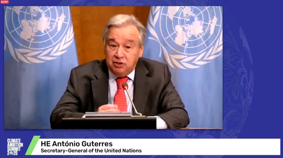 O secretário-geral da ONU, António Guterres, discursa na Cúpula da Ambição Climática (Foto: Reprodução UNTV)