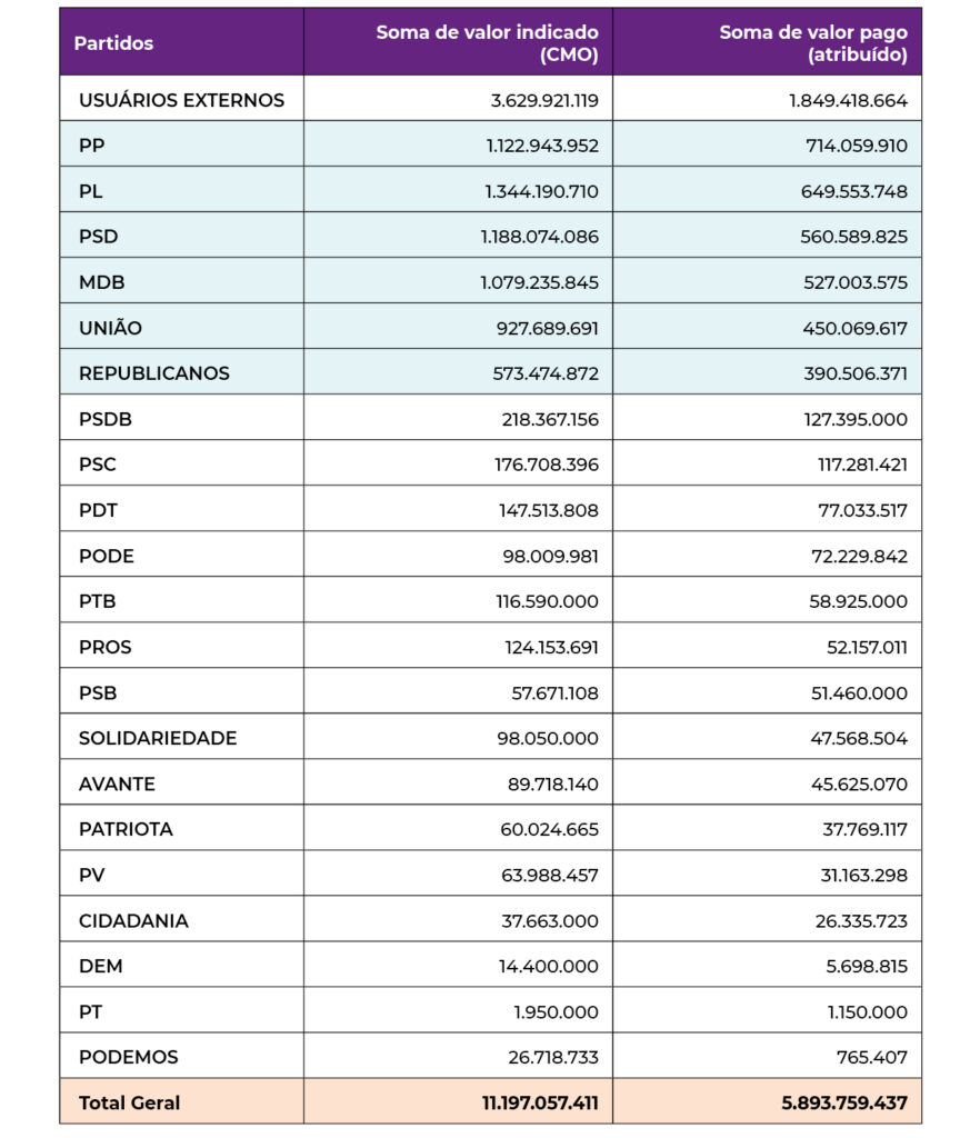 Inesc e Observatório do Clima produziram levantamento sobre a execução do orçamento secreto. Cruzamento de dados revela concentração dos pagamentos em poucos partidos e pequeno grupo de parlamentares