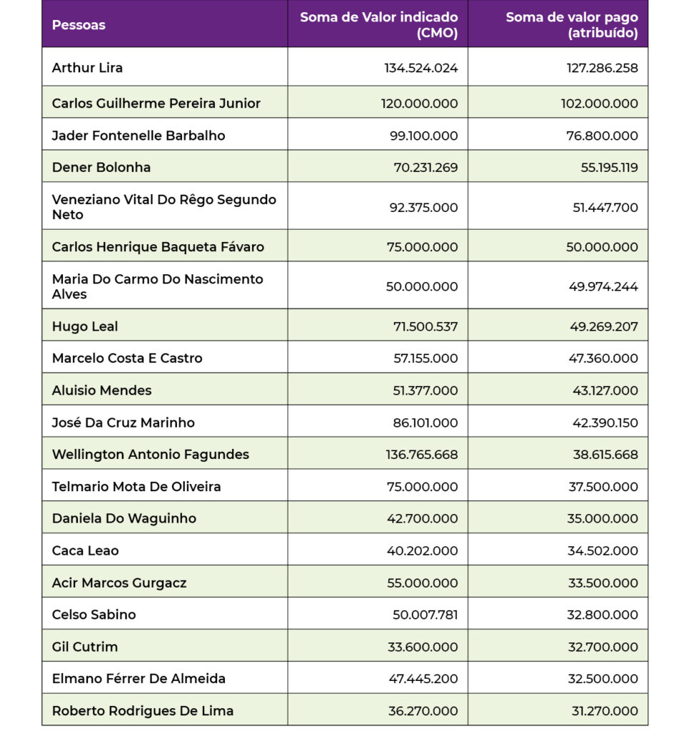 - Atribuição preferencial de valores de execução a deputados e senadores em detrimento de indicações de usuários externos.