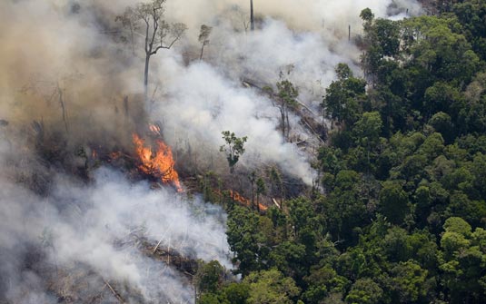 Taxa de mortalidade de árvores de florestas tropicais úmidas mostra sinais de aceleração nos últimos anos. Perda de folhas facilita as queimadas. (Foto: Daniel Beltra/Greenpeace
