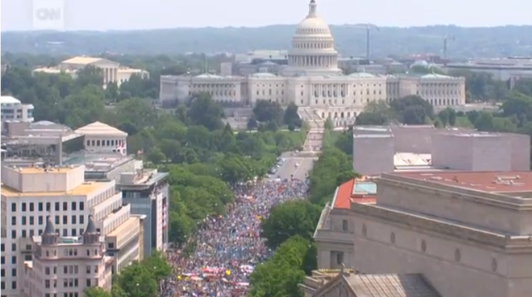 Na marcha de ontem, a BlueGreen Alliance, organização que une os maiores sindicatos de trabalhadores dos EUA e suas organizações ambientais, liderou parte do evento com mensagens positivas dizendo que é possível vencer os desafios ambientais mantendo os empregos e construindo uma economia mais forte e justa.