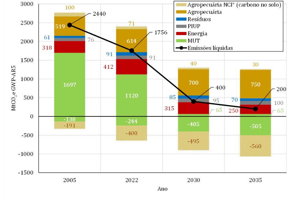 A trajetória de emissões líquidas proposta para o país é resumida no gráfico abaixo:
