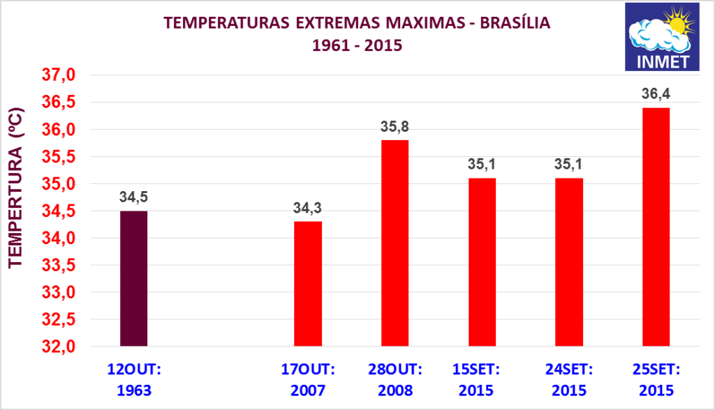 - Brasília: 35,8oC (2008), 35,8oC (2015), 36,4oC (2015)