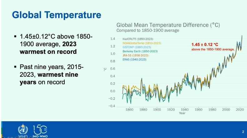 2023 foi o ano mais quente já registrado (Fonte: OMM)