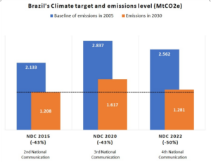 The second update, which had already been announced by Environment Minister Joaquim Leite in November, during COP26 in Glasgow, made two changes to the NDC. First, it increased the target for 2030 to 50%. Second, it used the newest and most accurate Brazilian emissions inventory as a calculation basis, as per the Fourth National Communication (which estimated 2,562 MtCO2e emitted in 2005).