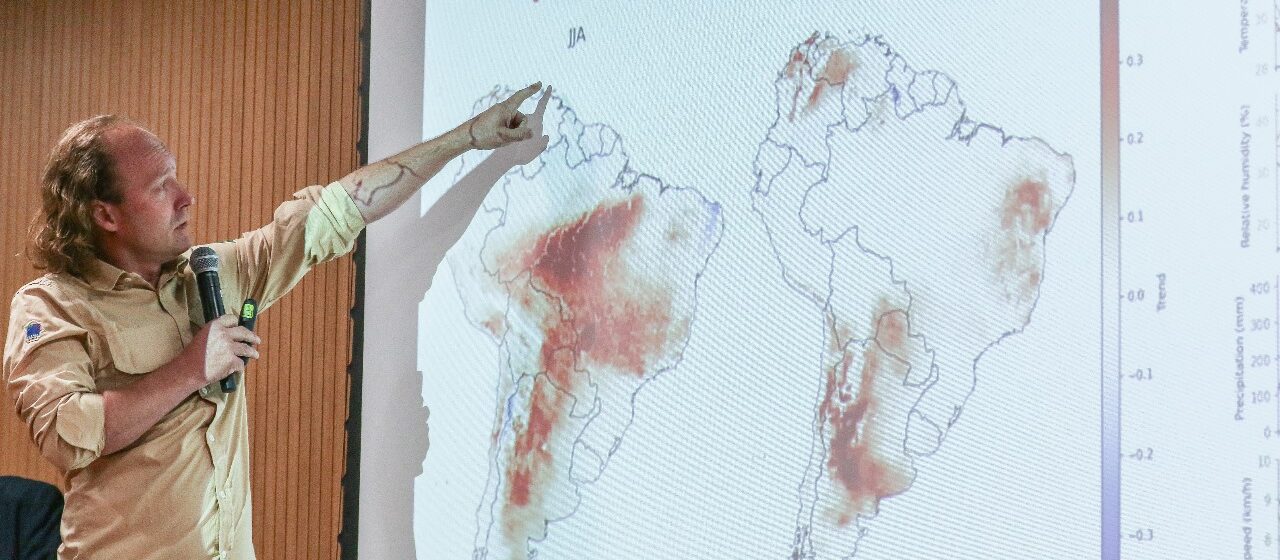 Apresentando um panorama mais geral, o presidente do Ibama explicou ainda que as queimadas são resultado da combinação entre o intenso El Niño deste ano, o aquecimento das águas do Atlântico Norte – fenômenos agravados pelas mudanças climáticas e que intensificam a seca na região – e o acúmulo de matéria orgânica ressecada no solo, fruto das derrubadas de vegetação nos anos anteriores.  Um mapa da Administração Oceânica e Atmosférica dos Estados Unidos (NOAA, na sigla em inglês) apresentado por Agostinho mostra o agravamento contínuo da tendência de risco de fogo em função do El Niño, com a alteração das temperaturas, chuvas, vento e umidade na América do Sul.