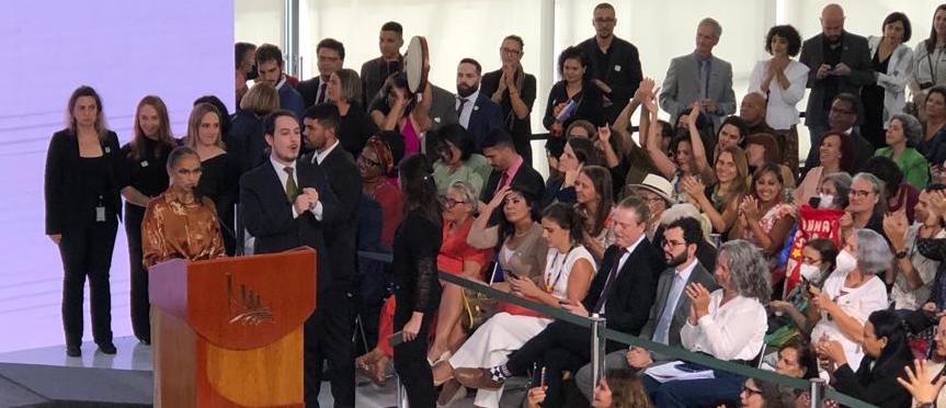 DO OC – Diante de uma multidão que lotou o Salão Nobre do Palácio do Planalto, a deputada Marina Silva (Rede-SP) tomou posse nesta quarta-feira (4) como ministra do Meio Ambiente. No evento, Marina detalhou a nova estrutura da pasta, anunciou João Paulo Capobianco como secretário-executivo e disse que a reconstrução da política ambiental será usada para o Brasil atrair investimentos e retomar acordos comerciais.