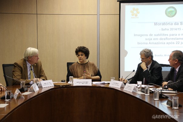 Durante a assinatura do acordo, a ministra do Meio Ambiente, Izabella Teixeira, ressaltou a evolução do trabalho entre os diferentes atores da moratória e a importância de sua continuidade. “É uma vitória do ponto de vista de construção política entre governo, setor privado e entidades não governamentais”, disse. “Há um comportamento do mercado e do consumidor que assimila o fim do desmatamento ilegal no Brasil, e é possível colocar o agricultor no caminho de produzir mais conservando mais.”