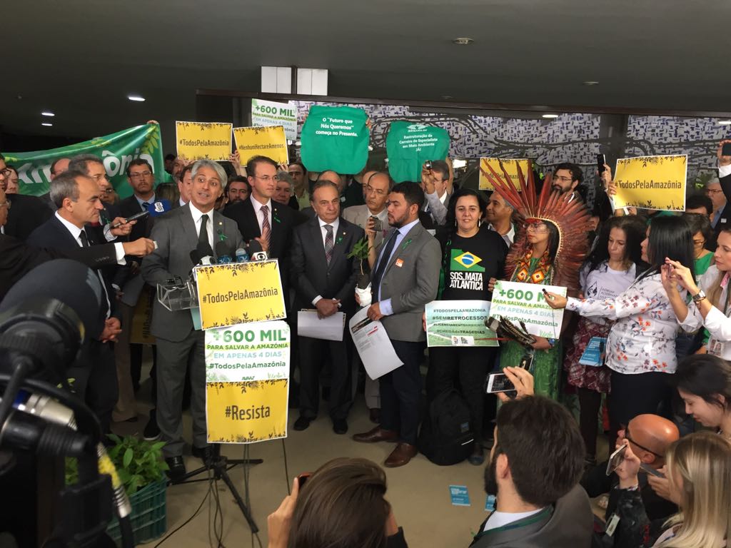 Ato promovido pela Frente Parlamentar Ambientalista no Salão Verde da Câmara criticou retrocessos ambientais do governo Temer, no mesmo dia em que Justiça concedeu liminar suspendendo decreto presidencial que extinguiu reserva minerária na Amazônia