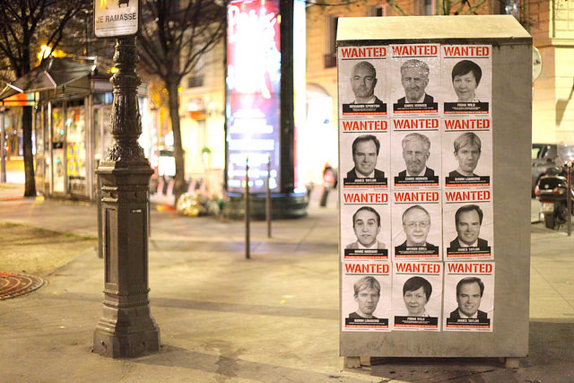 Sem poder fazer protestos públicos devido ao estado de alerta de terrorismo na França, a ONG Avaaz resolveu se manifestar silenciosamente: espalhou por Paris diversos cartazes com fotos de céticos do clima e executivos da indústria fóssil, com os dizeres “Procurado por crimes contra o nosso futuro”. Entre os “fichados” estão o dinamarquês Bjorn Lomborg, que perambula pelos corredores do Le Bourget, o americano Marc Morano e a australiana Fiona Wild, executiva da BHP Billiton – coproprietária da Samarco.