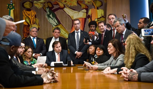 Grupo se une a índios e ambientalistas e entrega 1,5 milhão de assinaturas aos presidentes da Câmara e do Senado; Maia diz que não votará licenciamento “sem acordo” e que pedirá Temer cancelamento de decreto da Renca