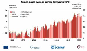 DO OC – Os últimos oito anos (2015-2022) foram os mais quentes já registrados, segundo dados climáticos globais divulgados nesta terça (10). Produzido pelo Copernicus, o Programa de Observação da Terra da União Europeia, o relatório aponta ainda que a concentração de gases de efeito estufa bateu novos recordes. Enquanto isso, eventos extremos como a seca no verão europeu, a onda de calor na China e os alagamentos no Paquistão se multiplicaram.